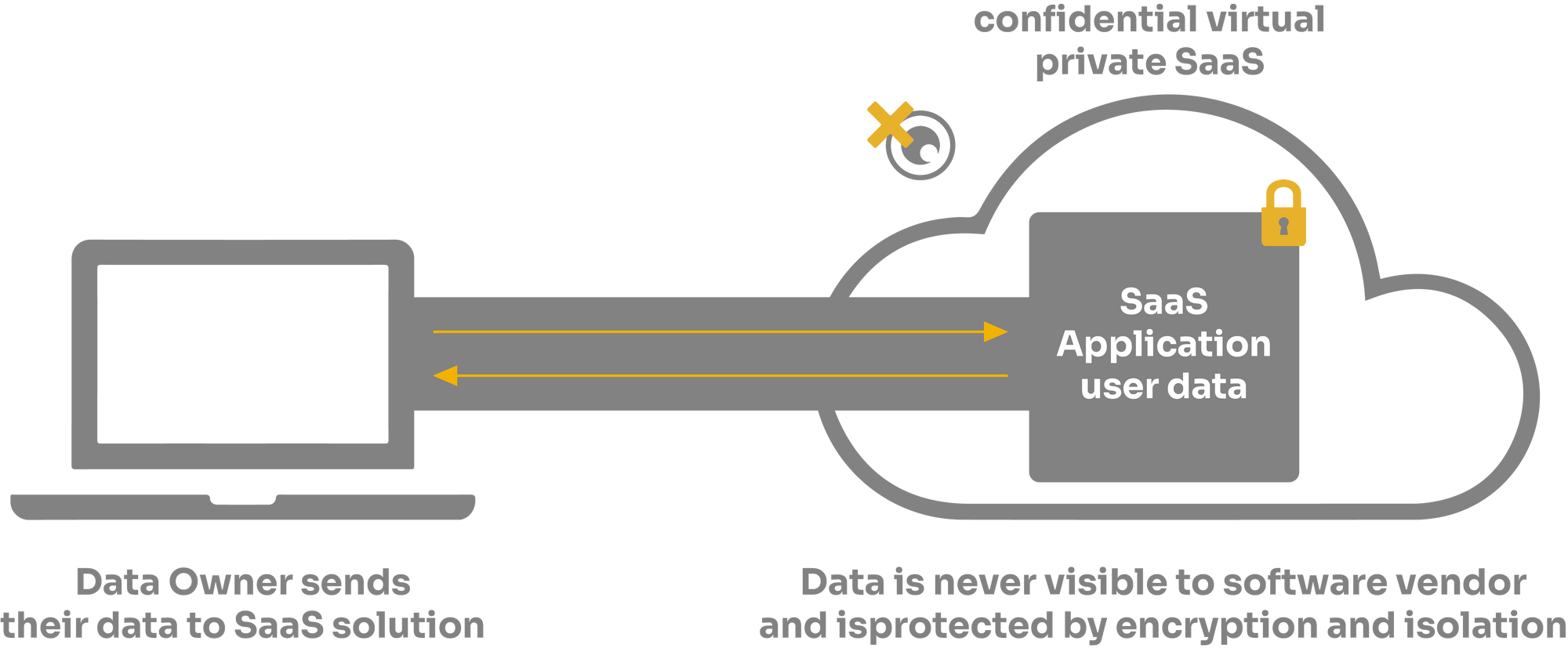 We create a virtual extension of data owners' infrastructure. This is what we call a “Virtual Private SaaS.” which is a SaaS deployed inside isolated and verifiable confidential containers. Virtual Private SaaS reproduces an air-gapped environment similar to on-premises deployment, thanks to the end-to-end protection, verifiability, and control confidential containers provide.