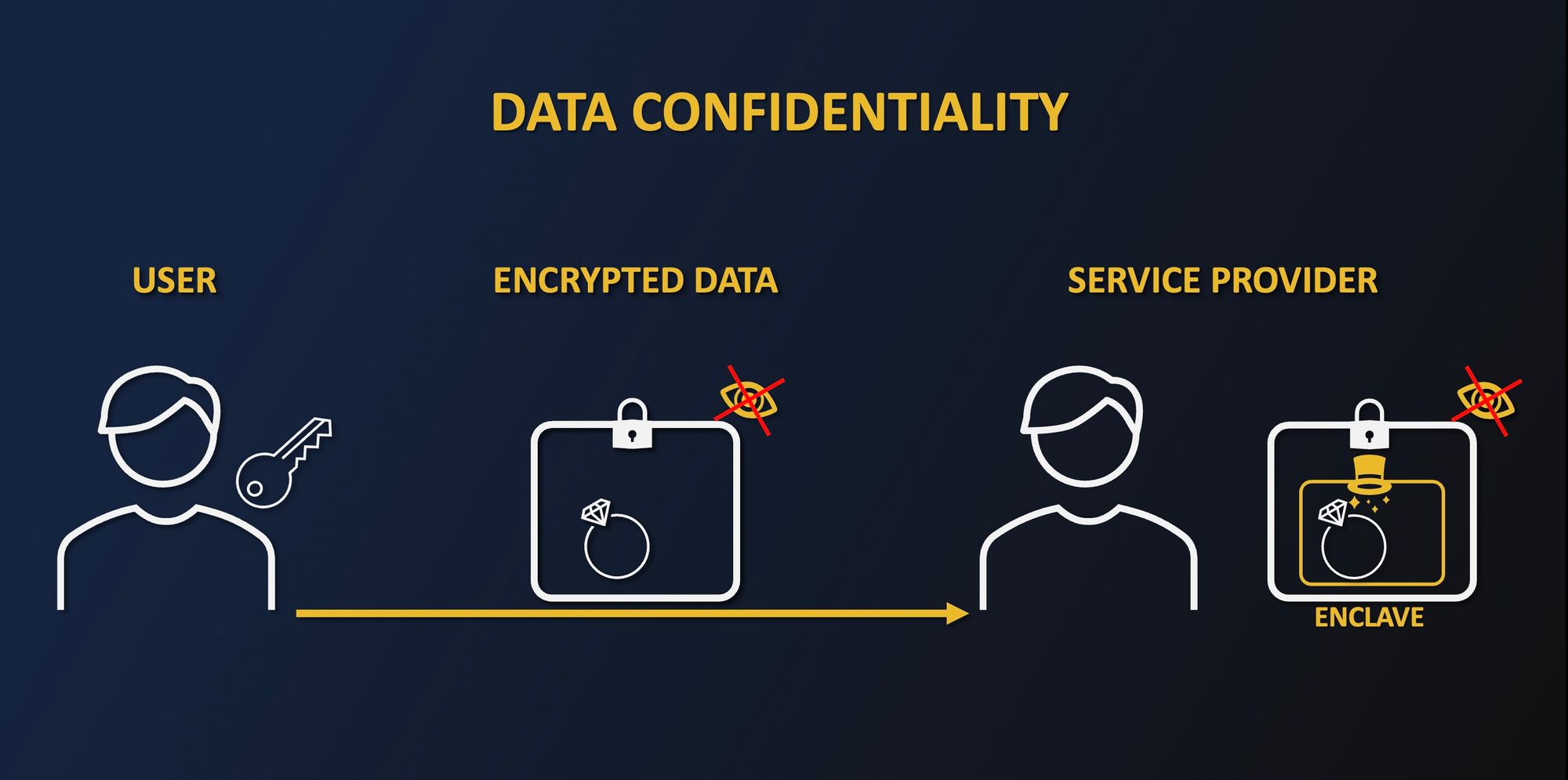 - The service provider then uses an enclave on the data in a way that prevents the service provider from seeing the data in clear