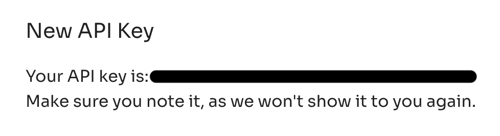 Please write down your API key somewhere and don’t lose it, otherwise, you will have to create another one!