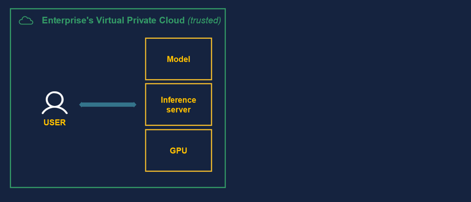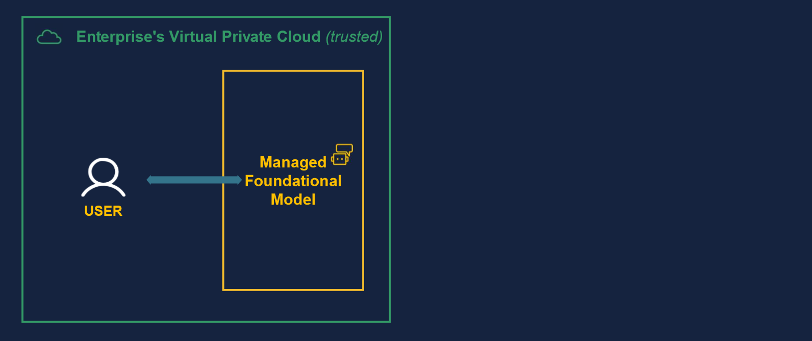 One way to get an FM running up and running is to deploy it inside one’s enterprise Virtual Private Cloud (VPC). This approach primarily addresses privacy and security concerns, as no data exits the VPC. Depending on the solution selected, it can also be relatively quick to implement.